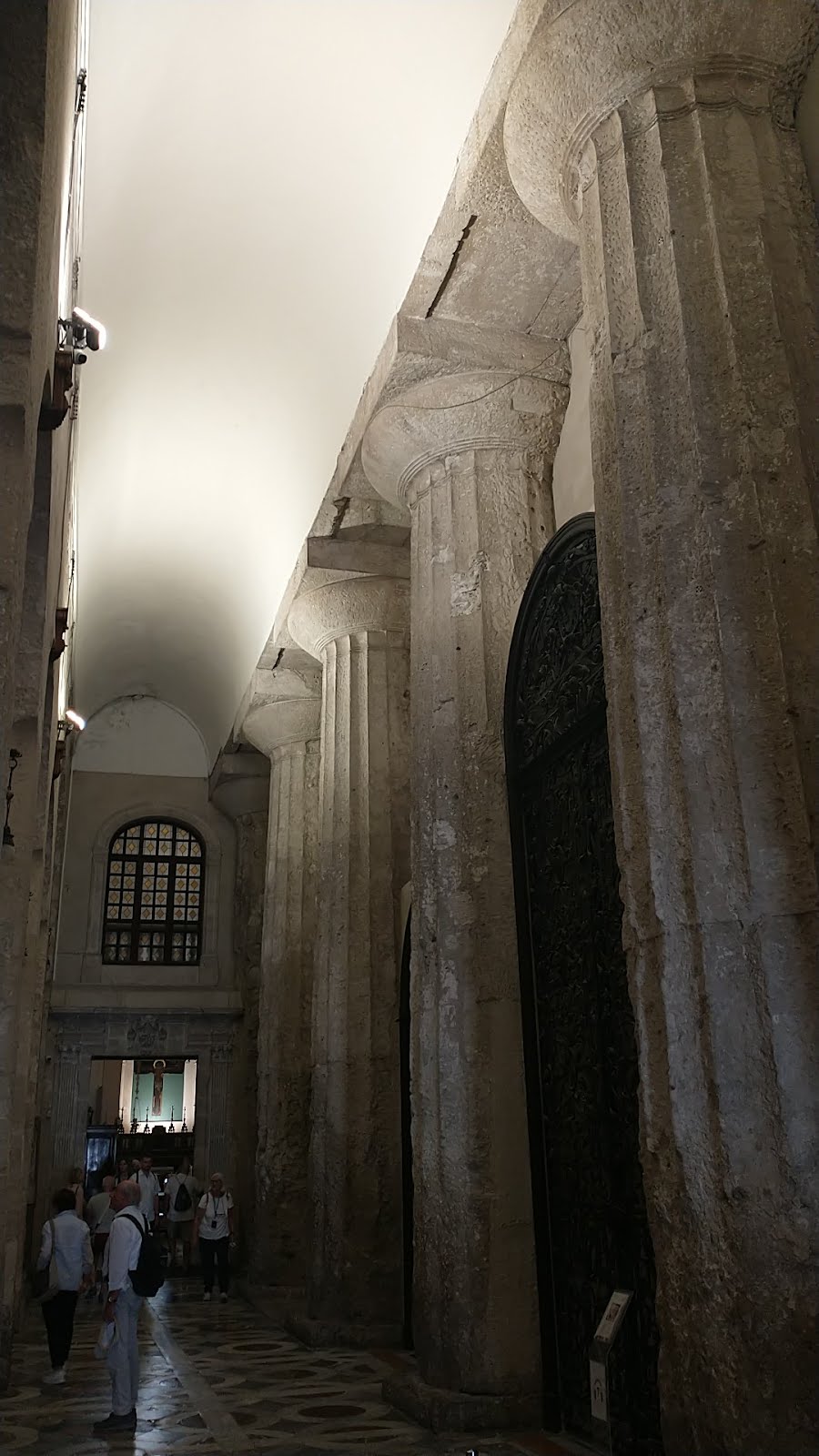We then wandered into the old town which is, of course, full of tourists and attending stuff but pretty nonetheless. Great cathedral which had been built around a Greek temple - very plain except for a couple of side chapels.